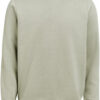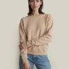 Bluza (unisex) z okrągłym dekoltem została wykonana z mieszanki 80% bawełny organicznej i 20% poliestru z recyklingu, oferując miękki, wygodny krój przy gramaturze 350 g/m². Wyposażona w ściągaczowy kołnierzyk, mankiety i dół w splocie 2×1. Bluza została poddana praniu enzymatycznemu, co nadaje jej gładką, delikatnie „noszoną” strukturę.