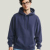 Bluza z kapturem (unisex) o luźnym, nowoczesnym kroju została wykonana z mieszanki 80% bawełny organicznej i 20% poliestru z recyklingu. Gramatura 350 g/m² zapewnia miękkość i trwały komfort, a pranie enzymatyczne nadaje jej gładką, przyjemną w dotyku strukturę. Model posiada regulowany kaptur ze sznurkiem, ściągaczowe mankiety i dół w splocie 2×1.